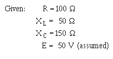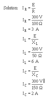 NOTE: If no value for E is given in a circuit, any value of E can be assumed to find the values of IL, IC, IX, IR, and IZ. The same value of voltage is then used to find impedance.