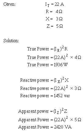 When the voltage is given, you can use the values of currents, I R, IX, and IZ, to calculate for the true power, reactive power, apparent power, and power factor. For the circuit shown (parallel RLC circuit, the calculations would be as follows.