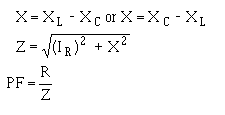 You should remember that in the series RLC circuit the following three formulas were used to find reactance, impedance, and power factor: