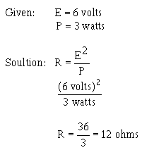 A circuit has a voltage source that delivers 6 volts and the circuit uses 3 watts of P. What is the resistance of the load?